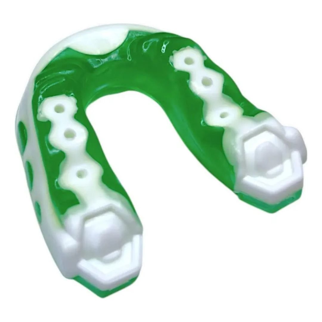 Seu design ergonômico se adapta perfeitamente à arcada dentária, proporcionando um encaixe seguro e confortável. Além disso, o modelo com detalhes exclusivos não só protege, mas também agrega estilo ao seu equipamento de luta.